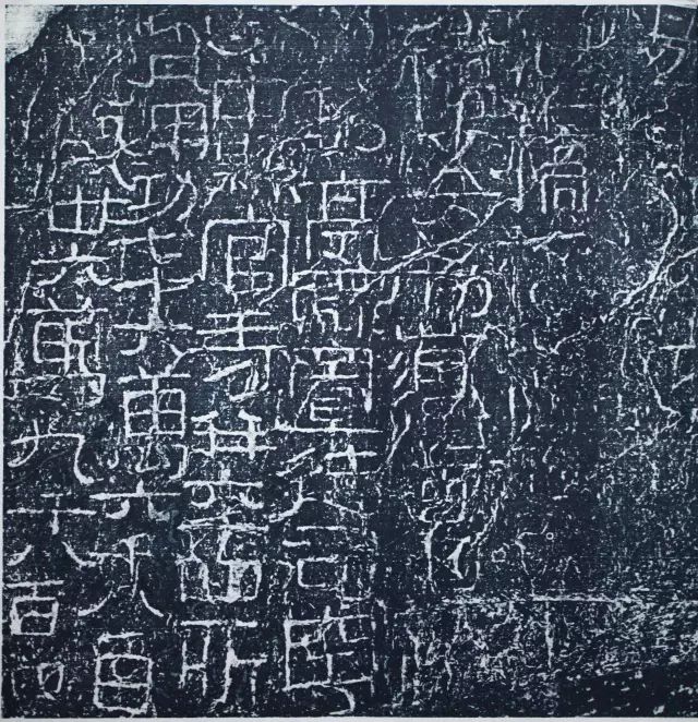 《开通褒斜道刻石》,汉永平九年(66)刻,16行,行5~11字不等。石在陕西褒城(今勉县)北石门溪谷道中,是现存最早的东汉摩崖刻石。此石书法气魂宏伟,布局饱满,笔划较细但遒劲有力,融入篆意,高古伟岸,加上天然石纹背景更增添一种奇趣。