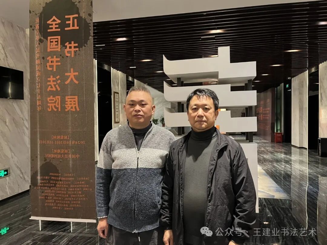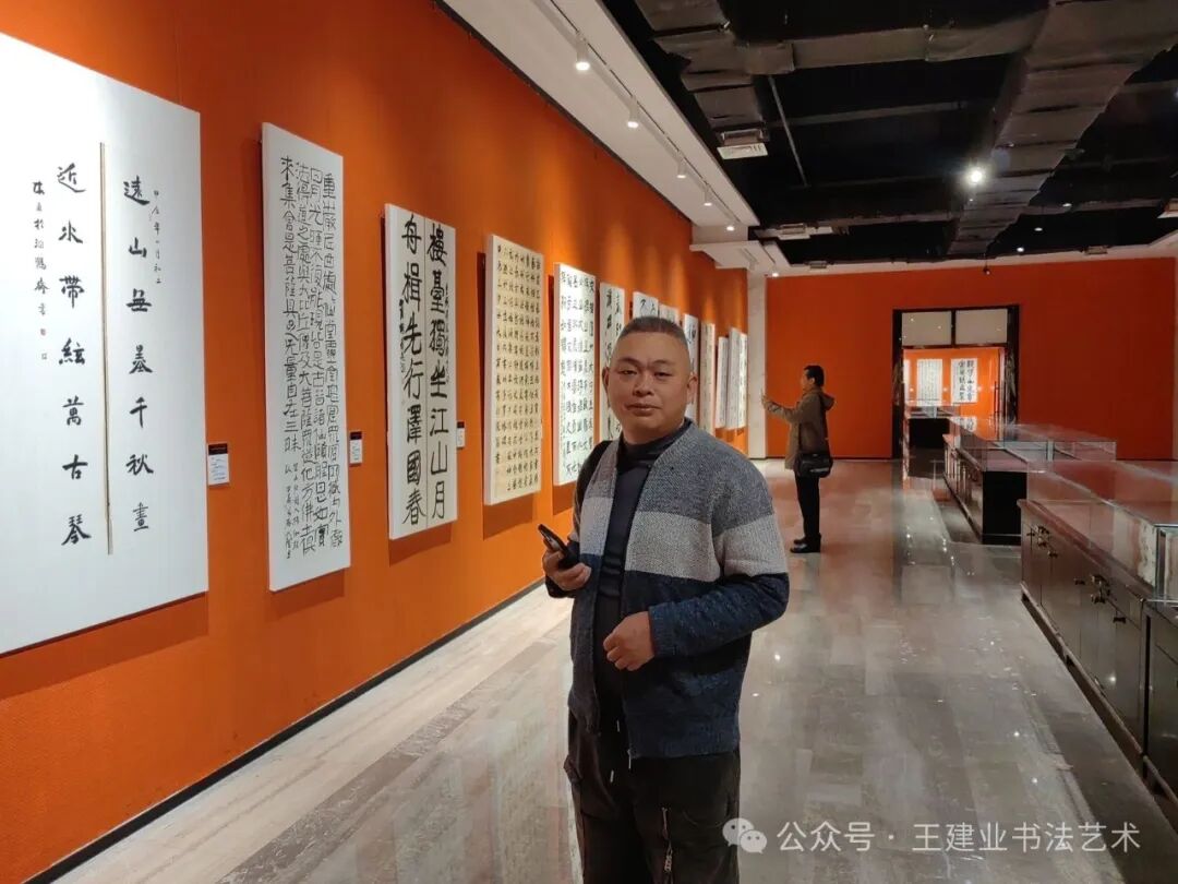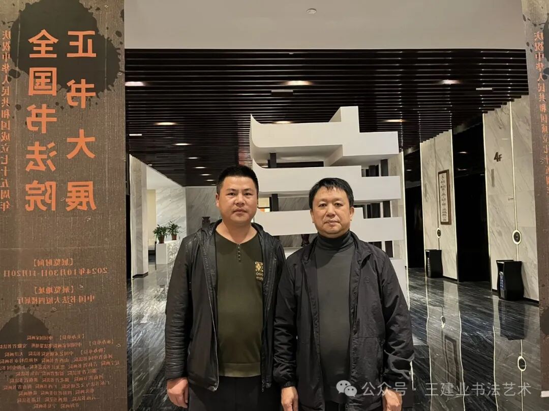 本来想一次发完,奈何,电脑老是出问题,只能先发一部分抽时间后面再发。因电脑原因,图片可能有发重复的,望见谅。下面是俺自己在展厅拍的,这张单人的是本帅哥,另两张我与张子文老弟与中国书法大厦展览部主任叶武老师
