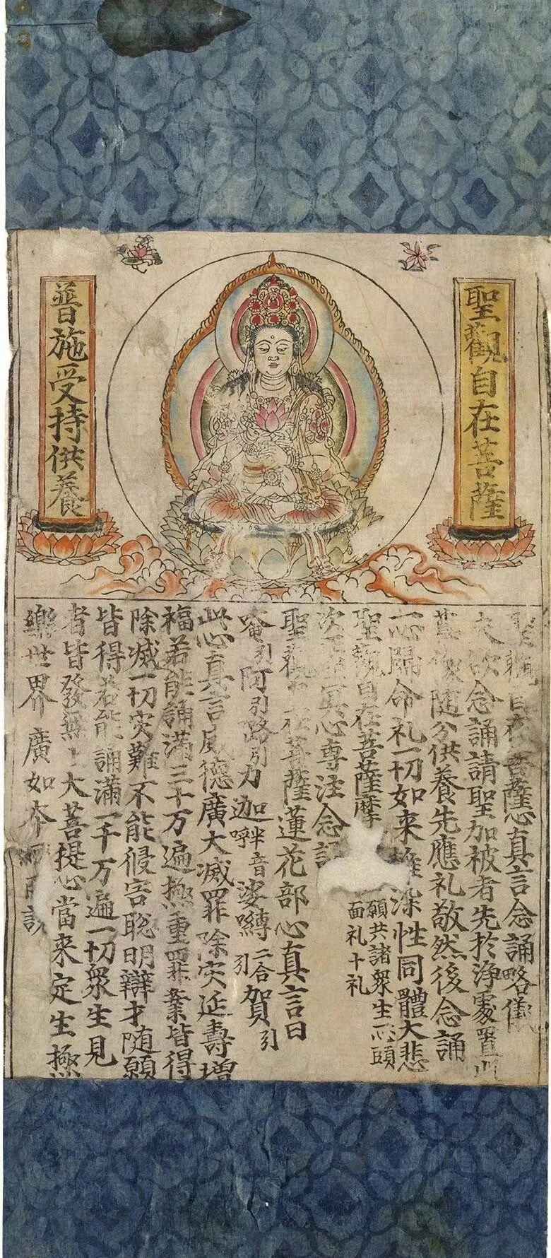 藏经洞出土,五代观音像,纸本木版画,大英博物馆藏