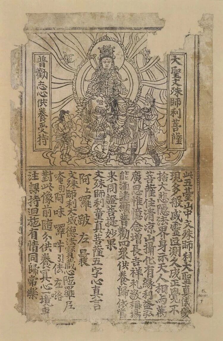 藏经洞出土,文殊菩萨像木雕版画,五代时期,纵63厘米,横46厘米,大英博物馆藏