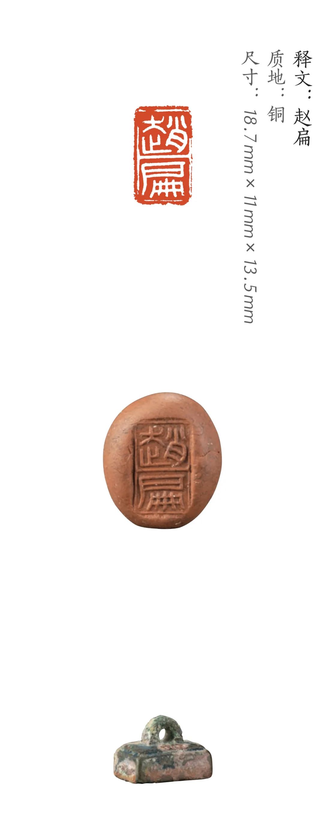 秦国地处关西,与东方诸国相比经济文化发展较慢,其文字沿袭了周的正体文字,规范整饬,结体方正,方笔多,圆笔少,少有创新。秦国官印称“印”也是其特异之处。一般秦国的玺印比秦统一之后的印章更自由,布局更放松,界格并不是秦国玺印的主要特征。当时入印的文字与社会生活中的实用文字仍不分,少有特定的某种印文或美术式的变体。战国玺印的印面广泛采用边框,宽阔的边框往往与纤细的阳文相配,而阴文则多增加复栏。这些组合的出现,说明在印文不变形的前提下当时已考虑到印面整体布局的修饰,这些都是先秦玺印的共同特征。