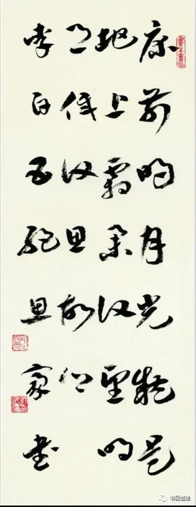 释文:床前明月光,疑是地上霜。举头望明月,低头思故乡。李白五绝,思豪书。