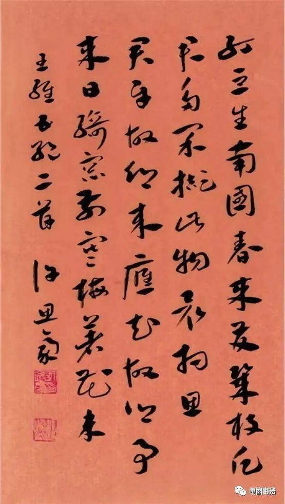 释文:红豆生南国,春来发几枝。愿君多采撷,此物最相思。君自故乡来,应知故乡事。来日绮窗前,寒梅著花未?王维五绝二首,许思豪。