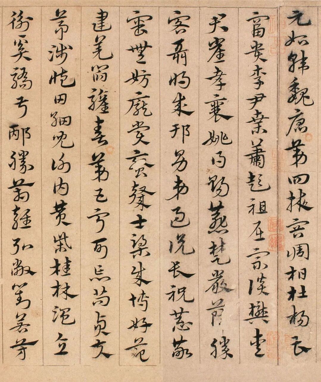 皇象《急就章》、《文武帖》与《顽闇帖》。皇象,字休明,三国东吴江都人。相传嬴秦“书同文”,丞相李斯作《仓颉篇》,中书令赵高作《爰历篇》,太史令胡毋敬作《博学篇》。入有汉,文园令司马相如作《凡将篇》,黄门郎史游作《急就篇》。是为“小学五篇”,皆世人习字之范本。汉以后,前四篇不复可见,唯有《急就篇》尚存,故“贤者多喜书之”而得传久远。《急就》之相传,亦时若悬丝,古人书之者伙,今人见之者几家而已。皇象之《急就章》乃于今可见最早的写本。《书断》列入神品,《法书本象》以“圣品”称之。后世章草书家,几乎无一不受其影响。原迹北宋时尚藏于御府。南宋叶梦得将其刻石于颍昌,但前后缺二百余字。宋亡,原迹亦佚,唯存叶氏碑本。明代仅见摹本。正德年间,吉水人杨政摹刻残本于松江,每行旁附叶梦得正书,所缺字达六百一十二,取宋克之字补之。后《玉烟堂帖》删去叶氏正书,故今所见传本亦有无正书者,实则皆皇象一帖。《中国章草名帖精华》仍将无正书者从原帖标作“史游”所书,不妥。叶梦得题皇象《急就章》,谓此书规模简古,气象沉远。包世臣《艺舟双楫》有“作草如真”即写草书像写楷书一样沉着之语,虽言汉晋草书而实亦因皇象《急就章》而发。《宣和书谱》谓其“文而不华”,质而不野。这些评价均准确道出了皇象《急就章》古朴沉雄的特点。《文武帖》仅六行,与《顽闇帖》均可从《阁帖》中得见。
