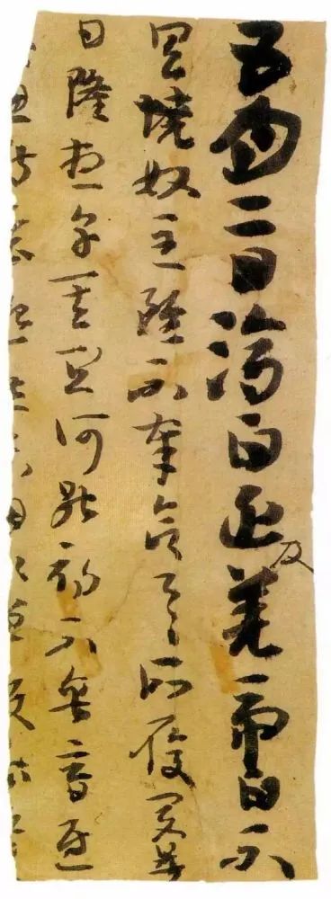 魏晋时期,我们能见到的章草名帖绝大部分是黑底白字的刻帖,不容易看出其用笔的方法,所以,我们最好先找一些这个时期的墨迹来看,如晋人残纸中好的范本,《济白帖》、陆机《平复帖》,也多是笔锋直下,形成浑圆之势,没有过多强调锋势的侧转,当然,《平复帖》中也开始出现一些笔锋顺势侧切的入笔方式,如“居”字等,这种入笔方式还是比较少见。