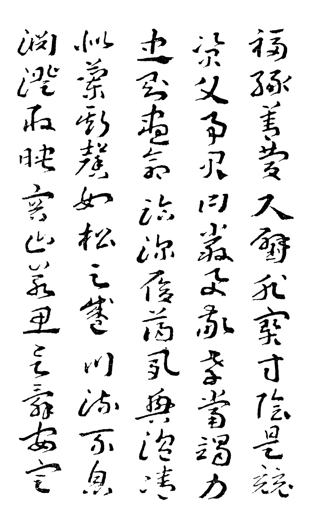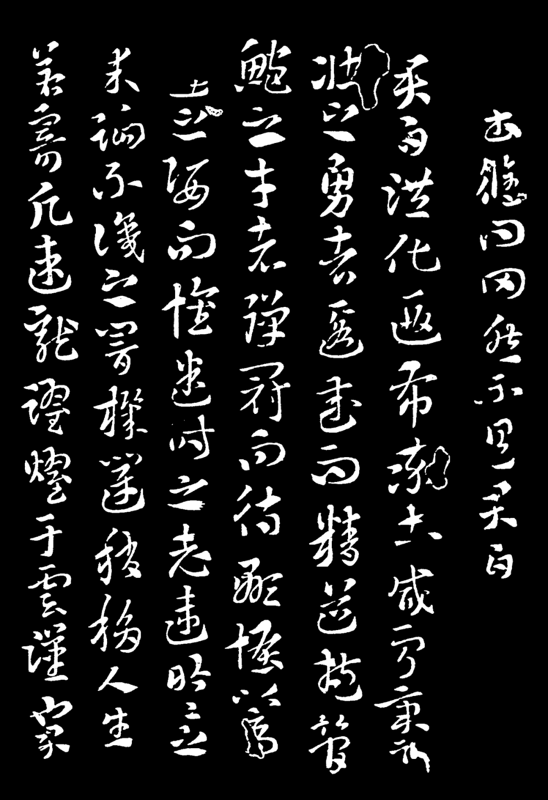 由上例可以看出,波磔的大致应用范围和特殊作用。特别是波磔在替代“点”、“横”、“撇”方面,在用波磔“删繁”、“省约”方面,其变化是奇特的,富有韵味的。