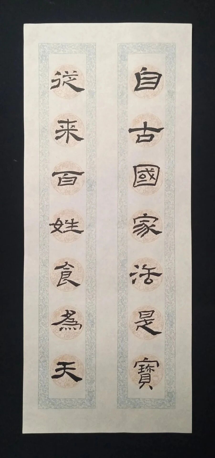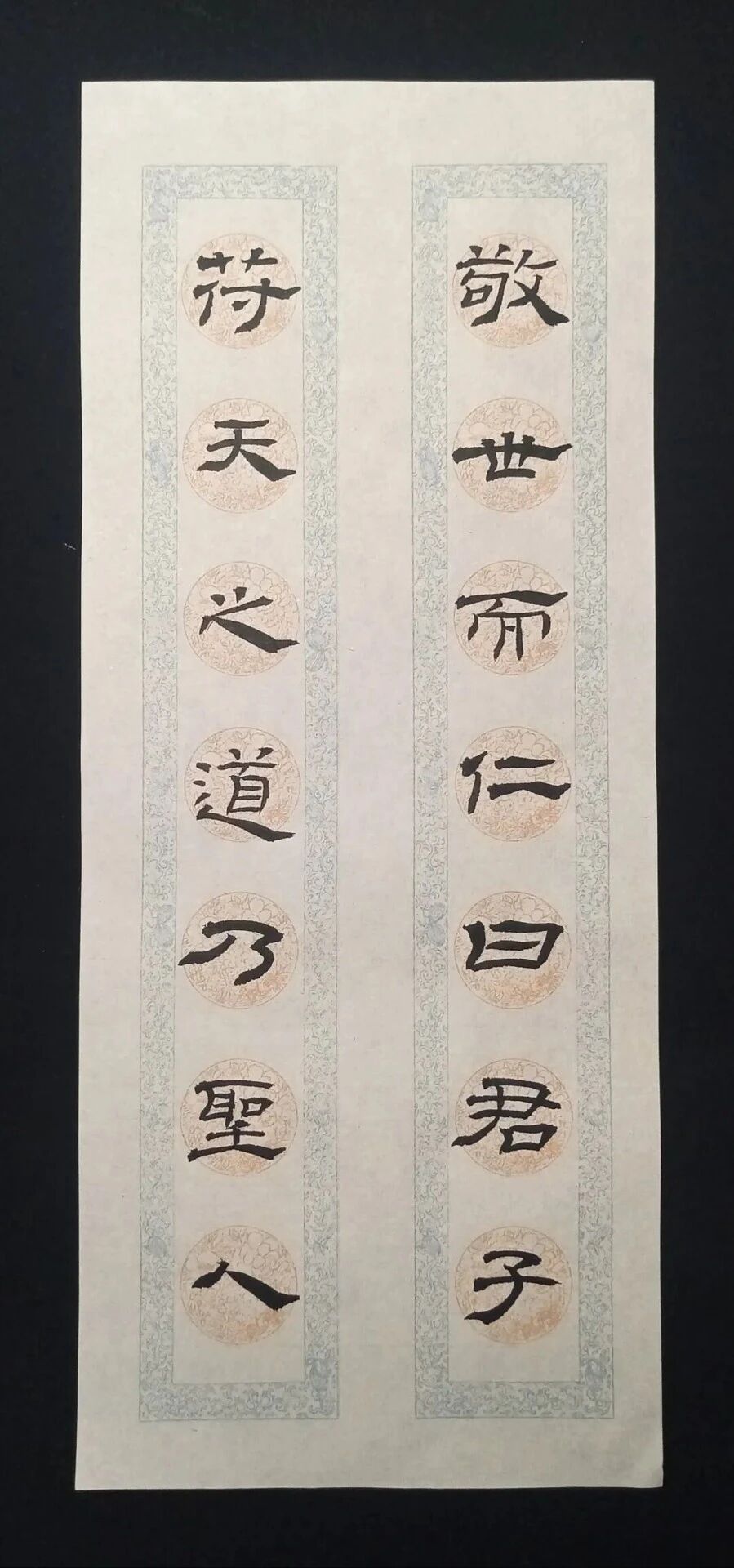 注意图书近古道存心山水得天真尺寸:34x14cm字径:2.5-3.0cm道载大王雄器宇法传书圣古风流尺寸:34x14cm字径:2.5-3.0cm自古国家法为宝从来百姓食为天尺寸:34x14cm字径:2.5-3.0cm敬世而仁曰君子符天之道乃圣人尺寸:34x14cm字径:2.5-3.0cm家居灵水青山畔人在和风华雨中尺寸:34x14cm字径:2.5-3.0cm事在通达罔造作思存高远复真诚尺寸:34x