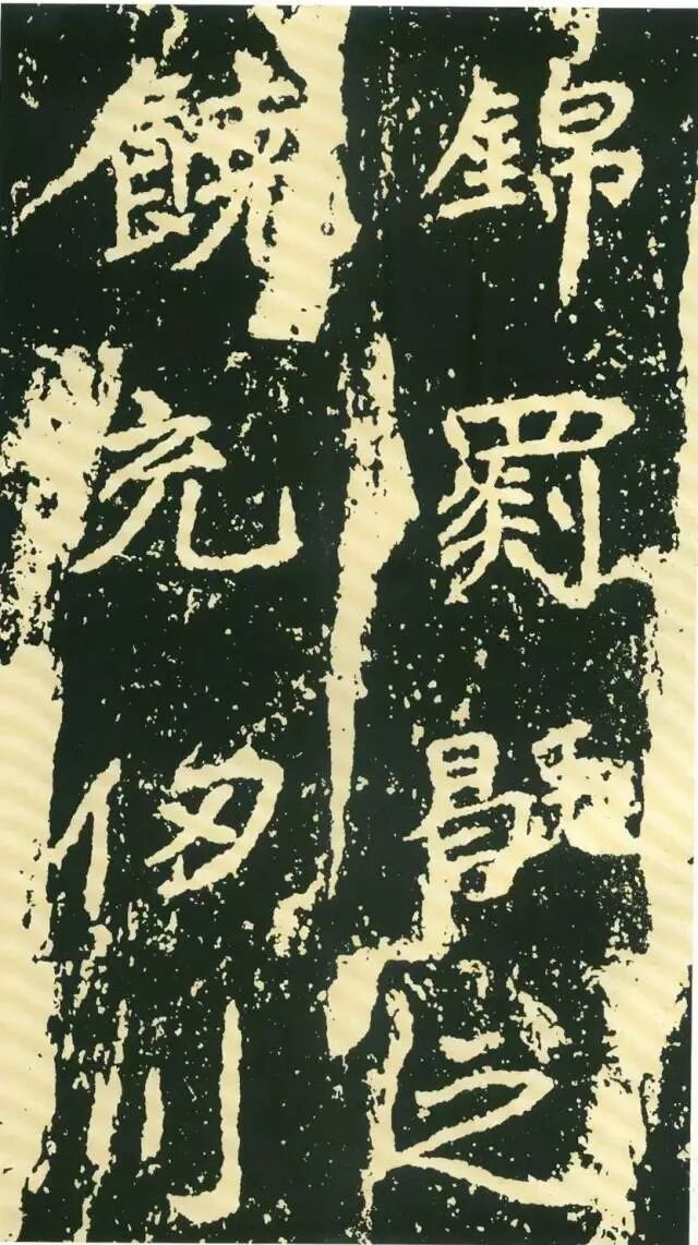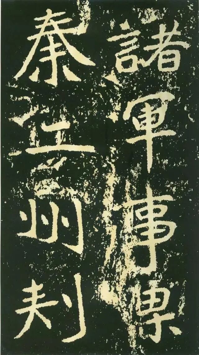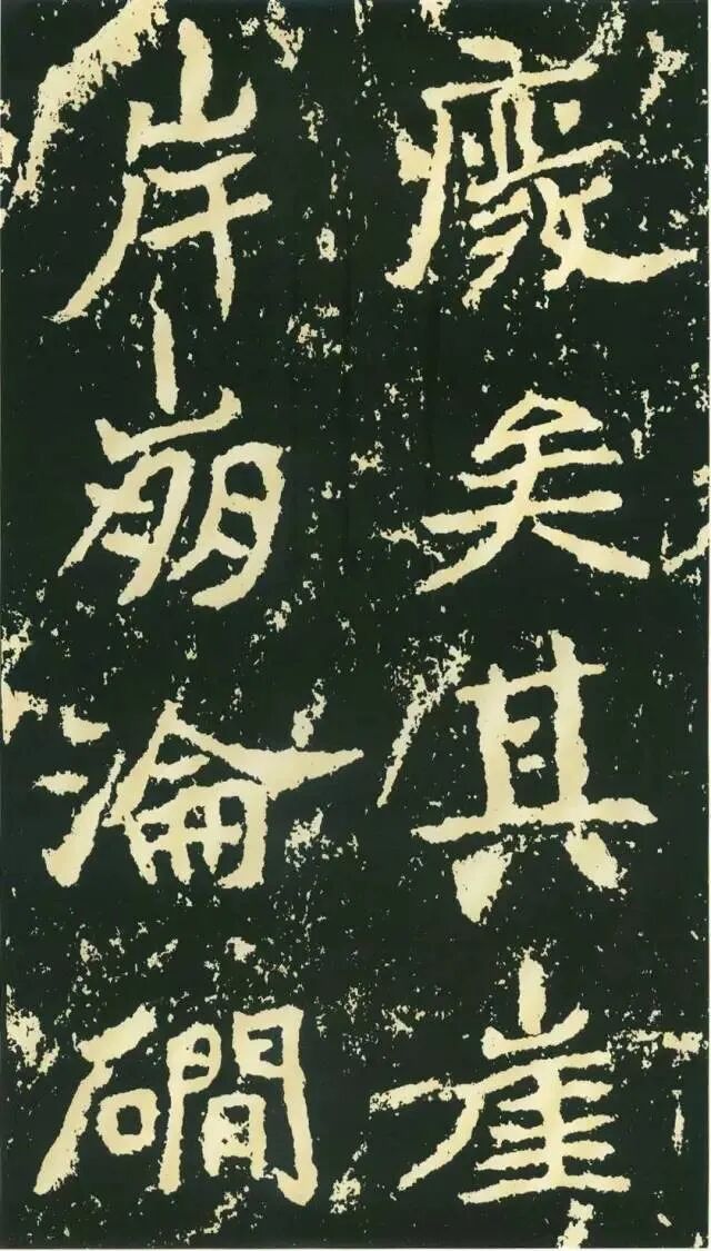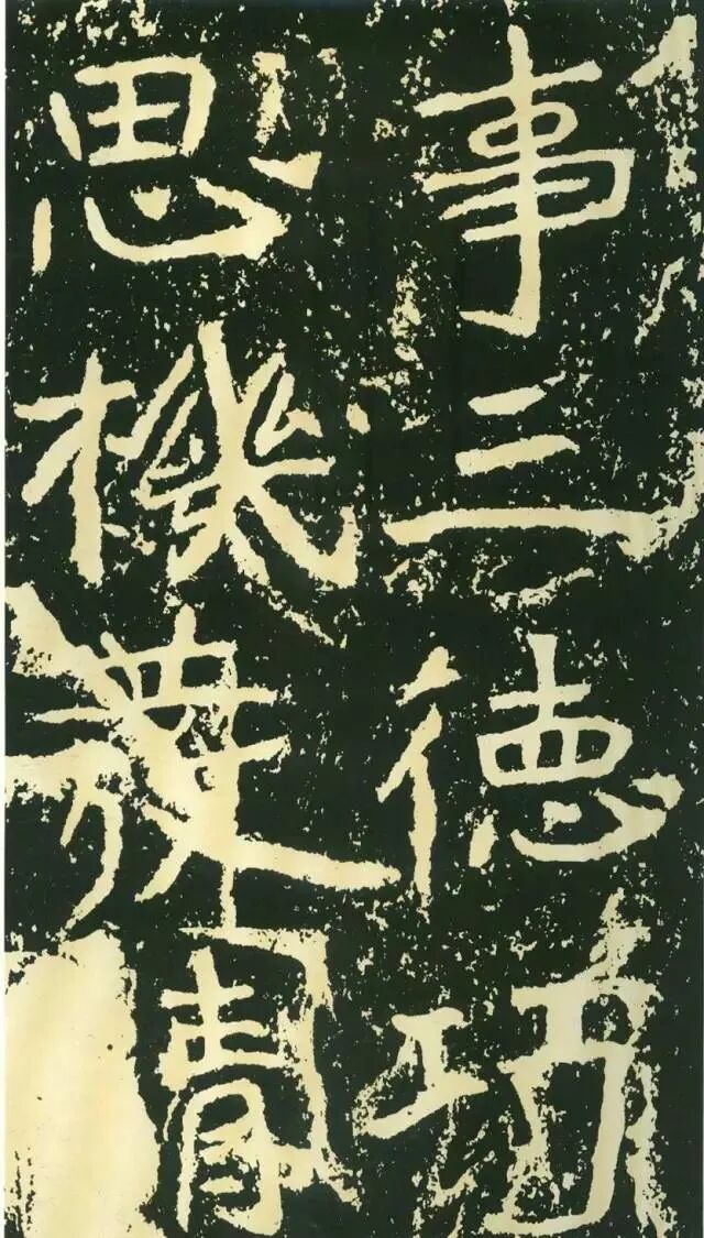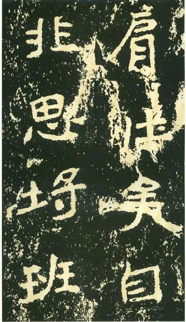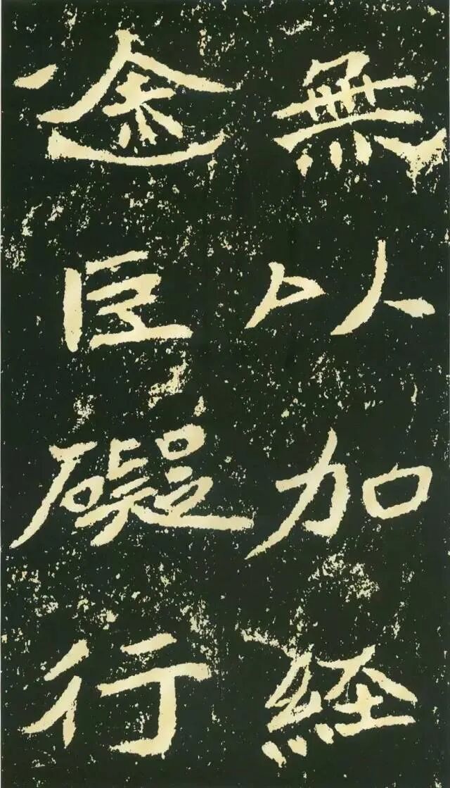 三、点画独特,呼应随势。特殊点画在字中常常起到改变字形、字势的作用。如“经”字,右部捺画一般都处理成反捺,此处却用长捺,改变了整个字的重心。“惟”字“隹”部竖画倾斜,使整个字具有动感。“梁”字尤佳,末笔本应为顺势与左侧点画相呼应,但这里自行舒展开来,使整个字似倾非倾,平中见奇。