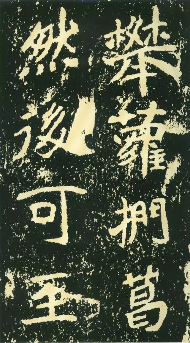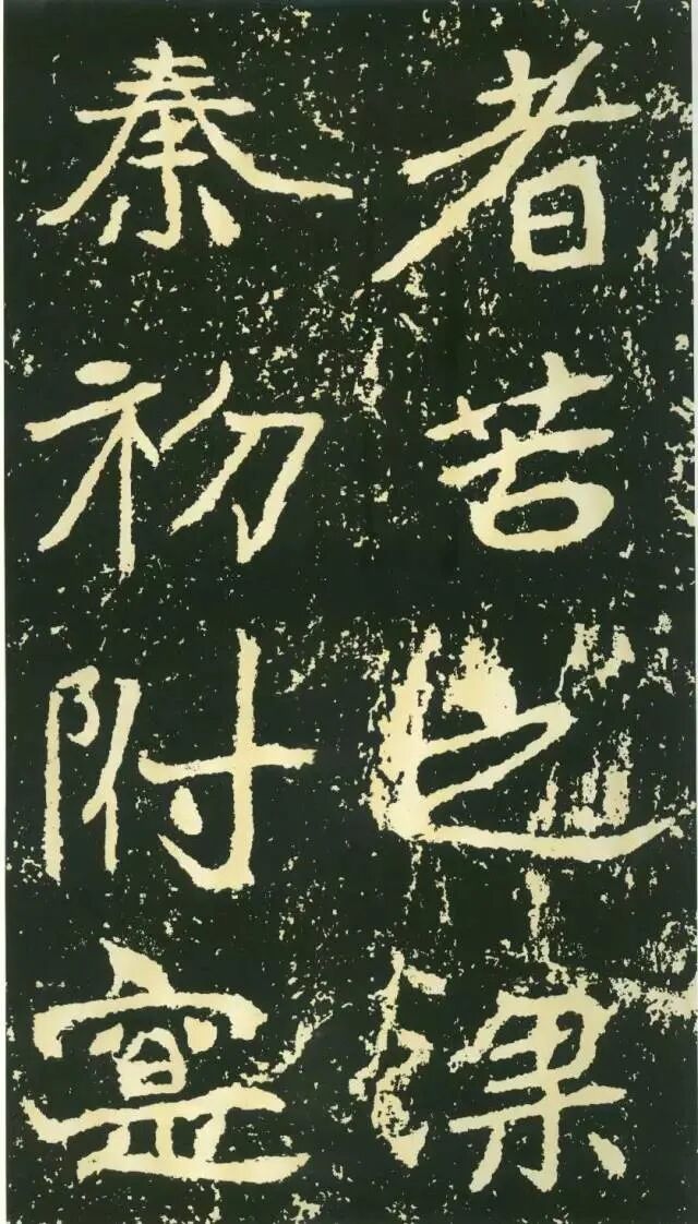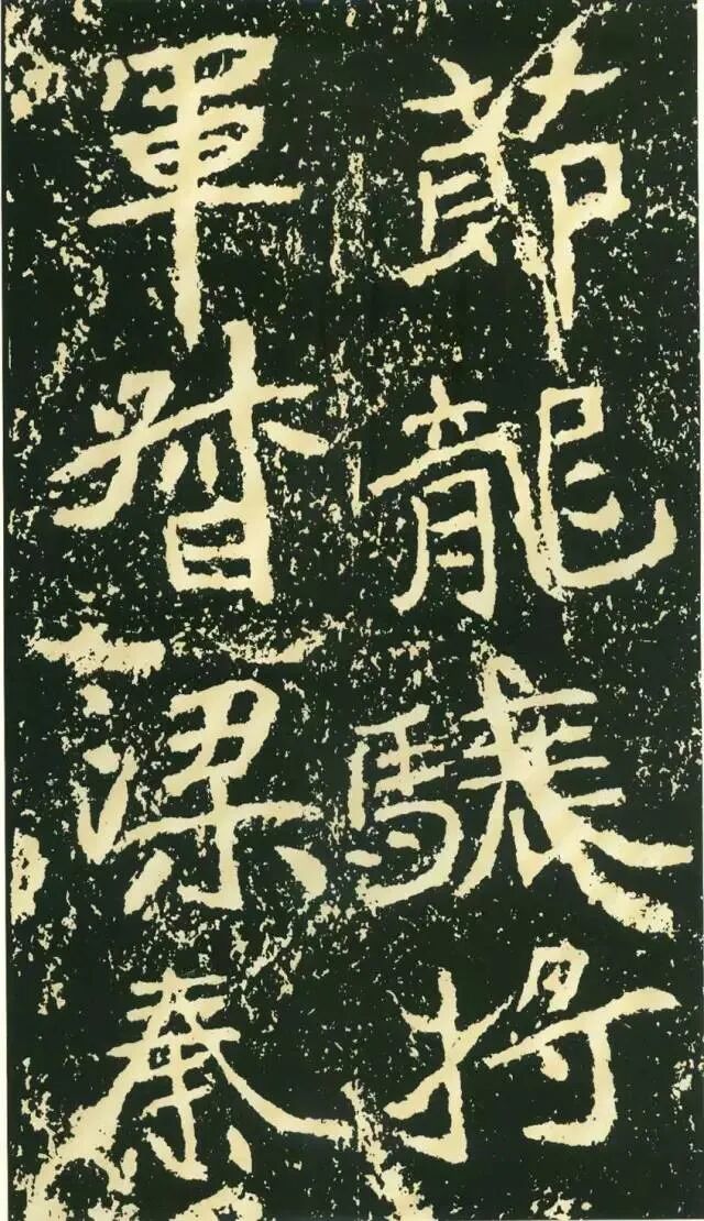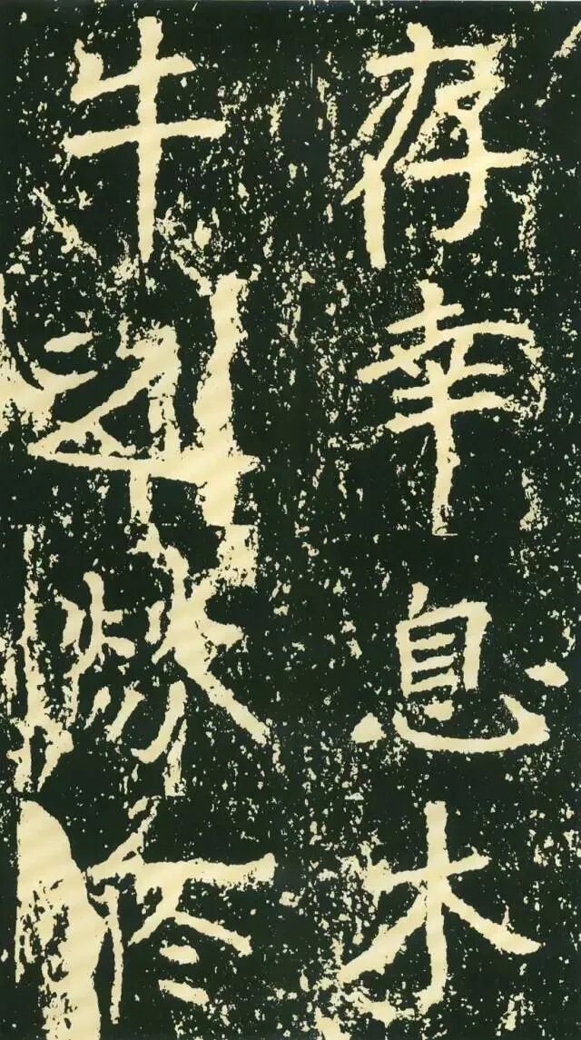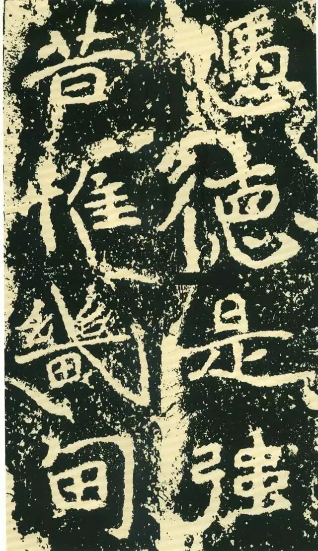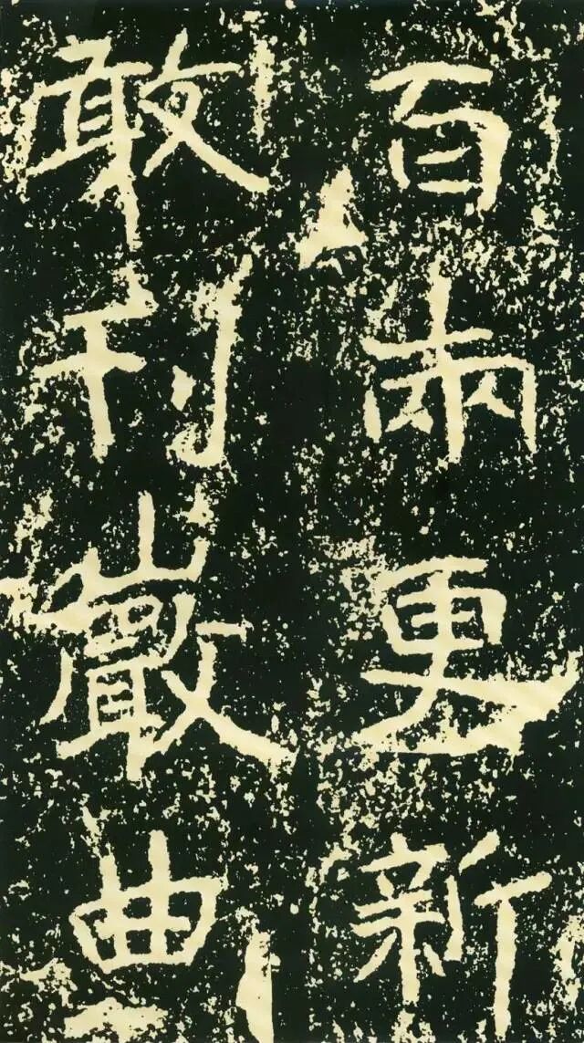 三、点画独特,呼应随势。特殊点画在字中常常起到改变字形、字势的作用。如“经”字,右部捺画一般都处理成反捺,此处却用长捺,改变了整个字的重心。“惟”字“隹”部竖画倾斜,使整个字具有动感。“梁”字尤佳,末笔本应为顺势与左侧点画相呼应,但这里自行舒展开来,使整个字似倾非倾,平中见奇。