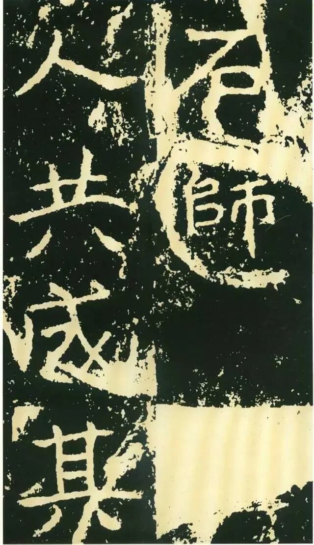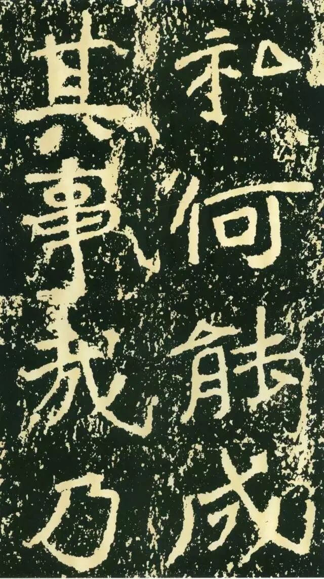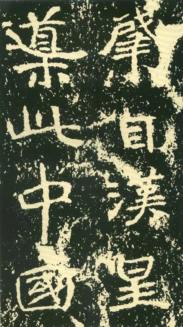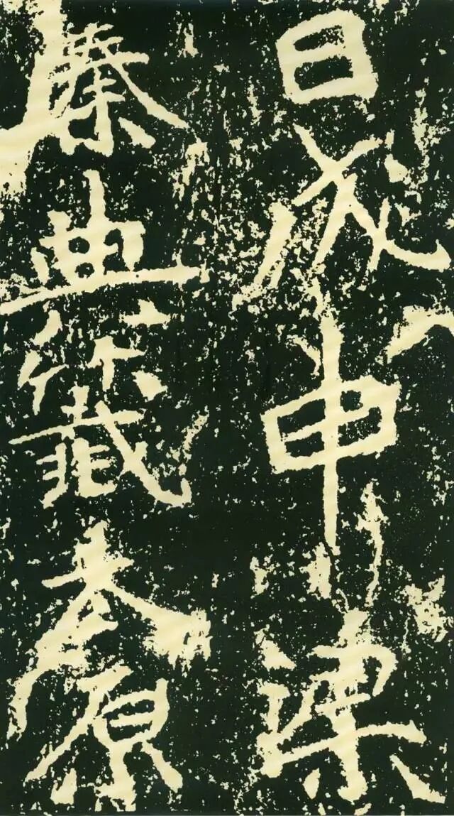 作为摩崖书,《石门铭》较之一般造像、墓志等作品气势更加宏大,但其结字形态并非一味求大,也有极个别做“小”处理,这样就形成了极强的对比。如“献”字较大,而“公”字较小,由字形夸张而形成对比。有的则是由笔画的极力伸展夸张和极力缩短而形成对比,有的则是利用字的高矮来制造对比。