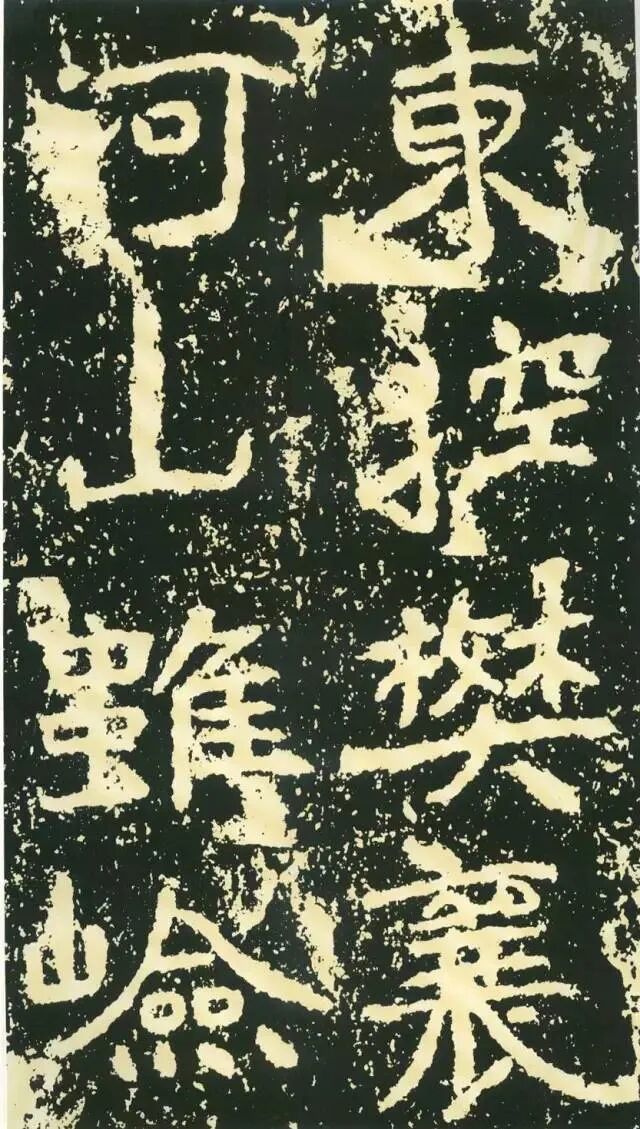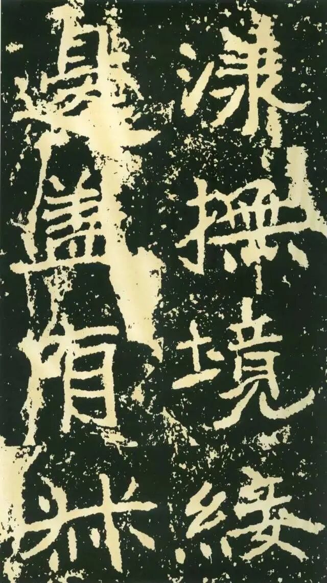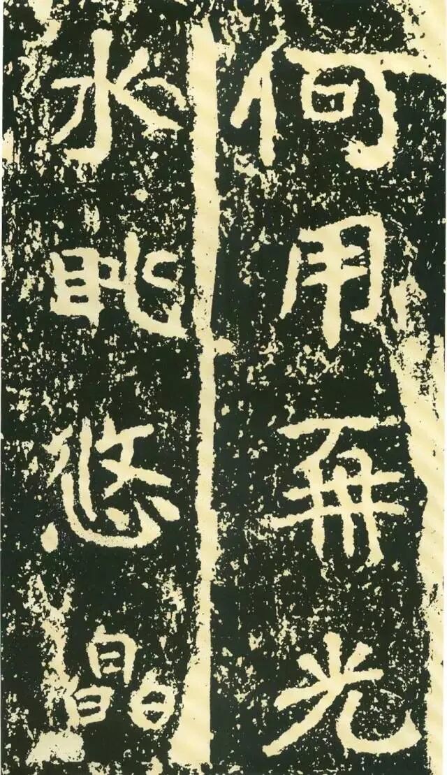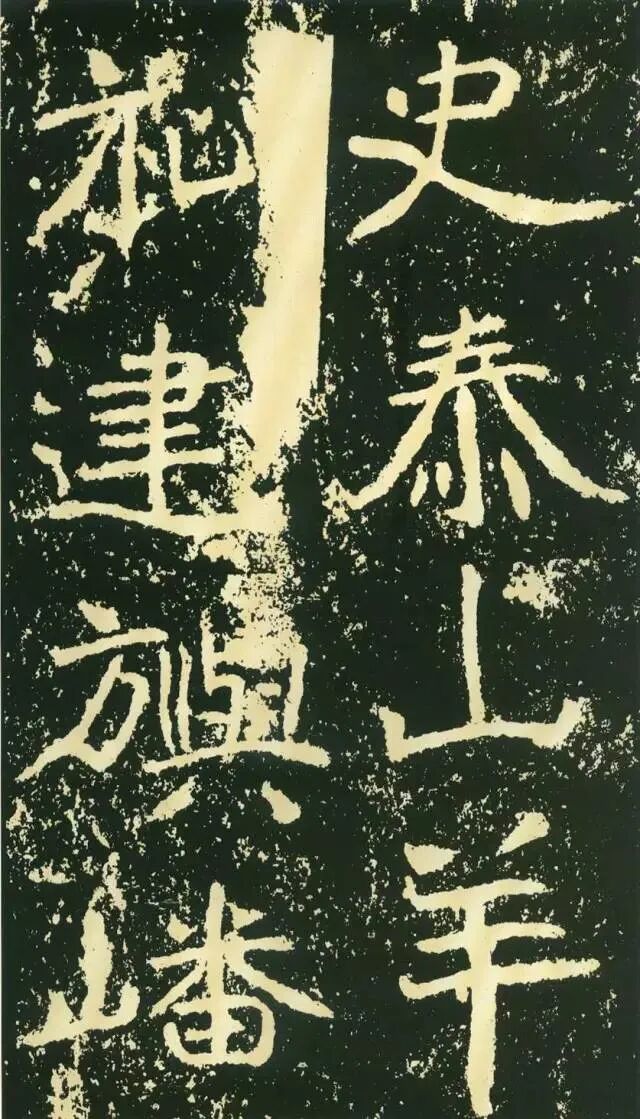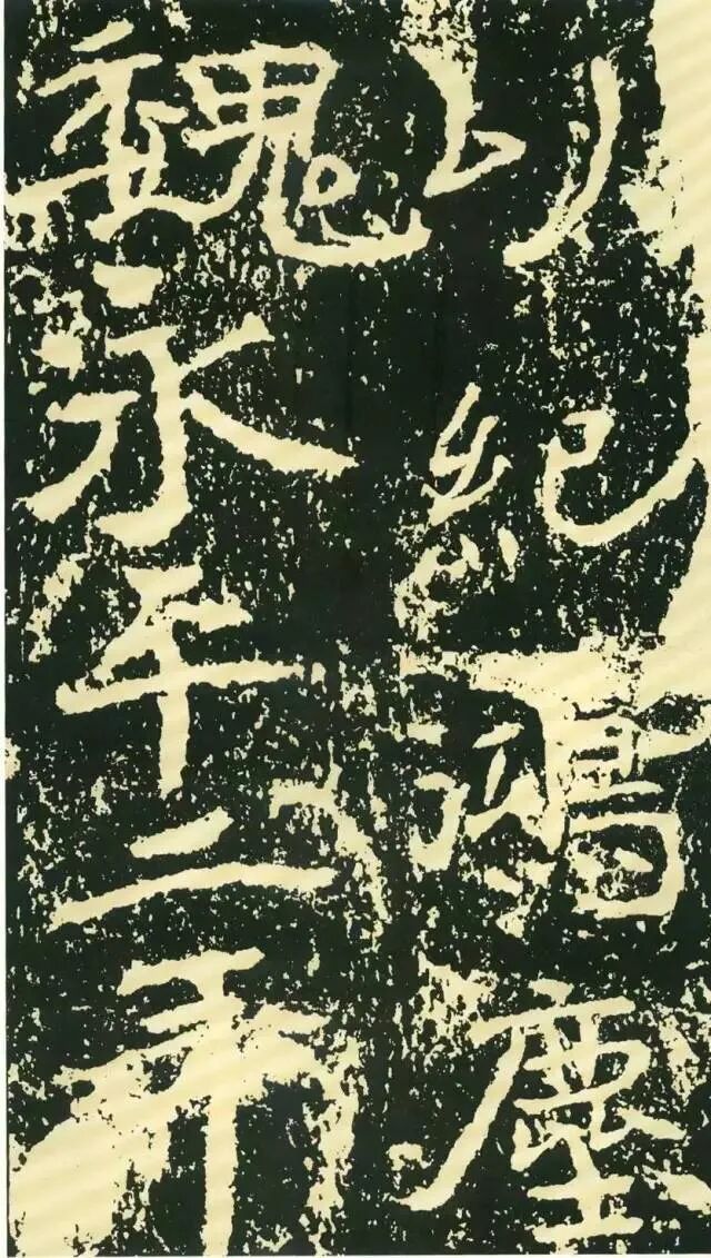 二、因字生形,意形相托。《石门铭》的很多结字一时有一时之态,不拘常调。如“方”字点画重入,横画一波三折,撇画很长,气势非凡。“成”字笔画有意处理得“松散”,使整个字变得很疏朗。“州”字形体本身很特殊,三部分大致相同,但此字自左至右逐渐向下倾斜,动感顿生。“仁”字单人旁稍向左倾,“二”部向右倾斜,左右两部分形成互动。“崄”字造型很别致,“山”部安放在左上部,力压千钧,却又稳稳当当。“途”字“余”部欹斜取势,“辶”恰如一叶小舟,上面一船夫正奋力划桨,乘风破浪,驶向远方。