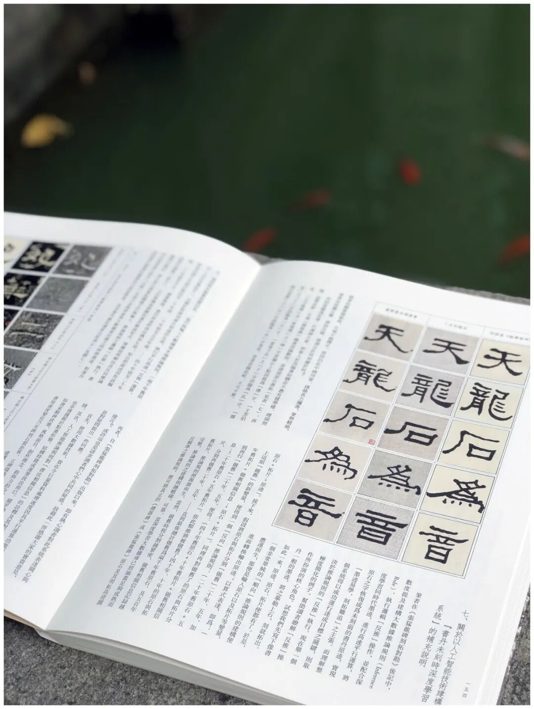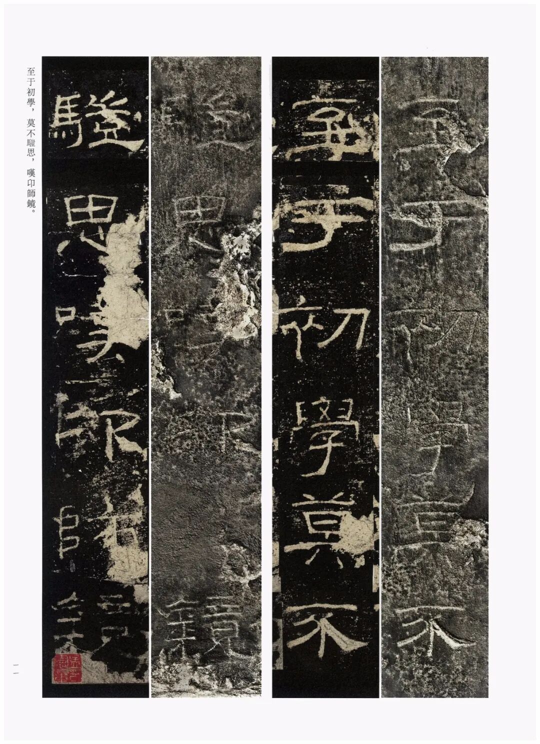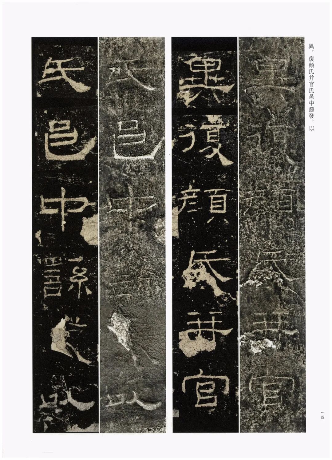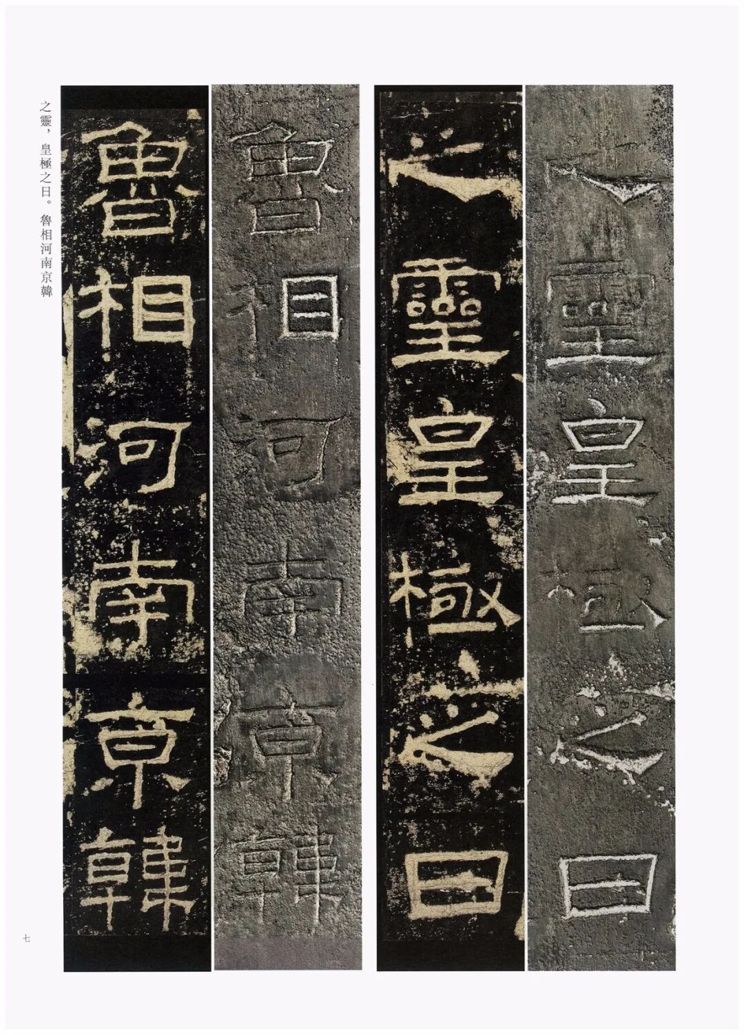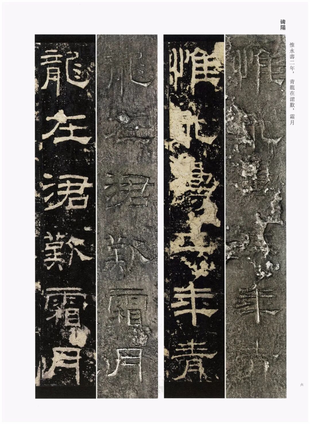 第三,加大开本。《礼器碑刻拓对勘》采用8开大小的开本(成品尺寸350mm×260mm),较之《张猛龙碑刻拓对勘》(16开,成品尺寸285mm×210mm)大了很多。书中的原拓与原石照片也略加放大,为原大尺寸的120%左右。能够更好地满足读者对于高清印本和刻拓细节的追求。