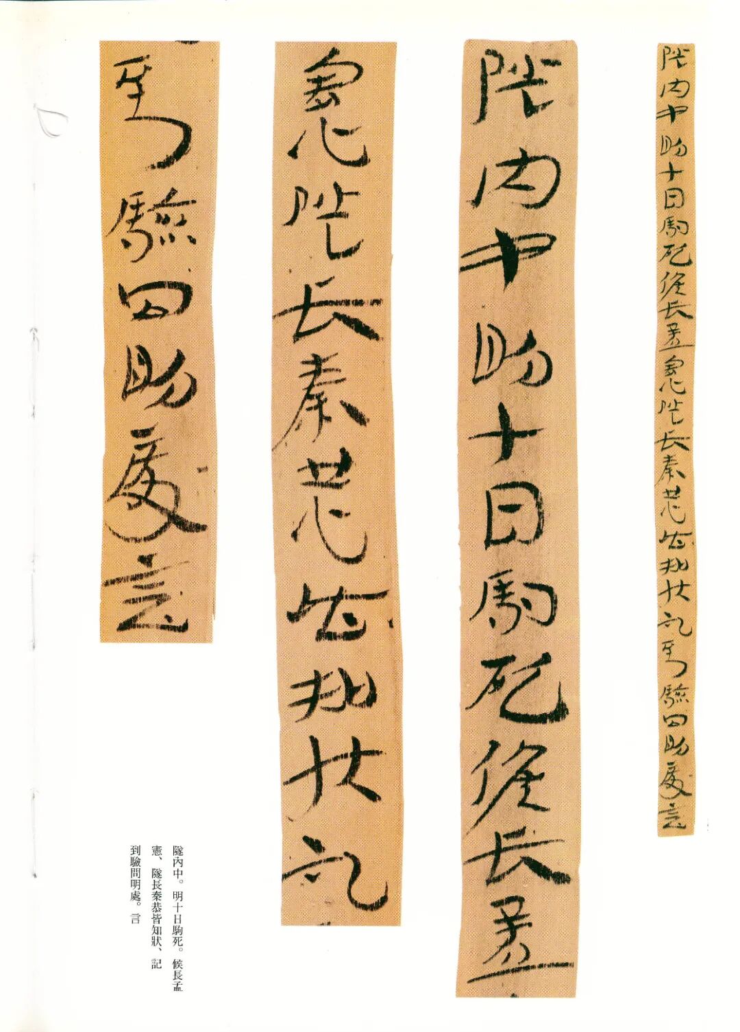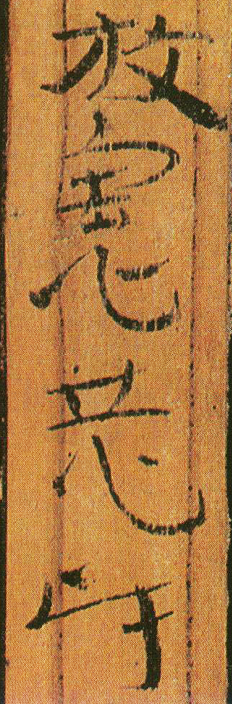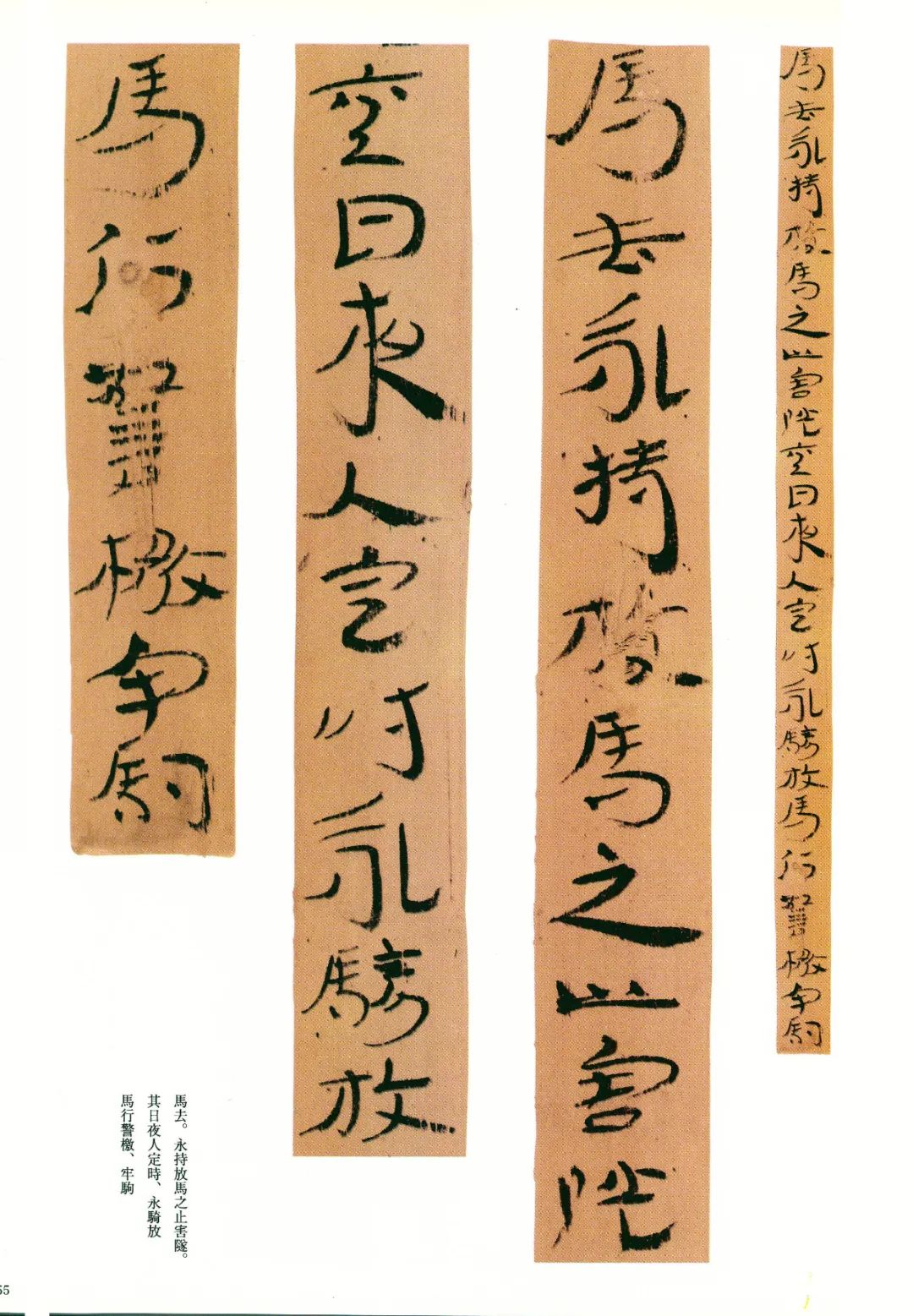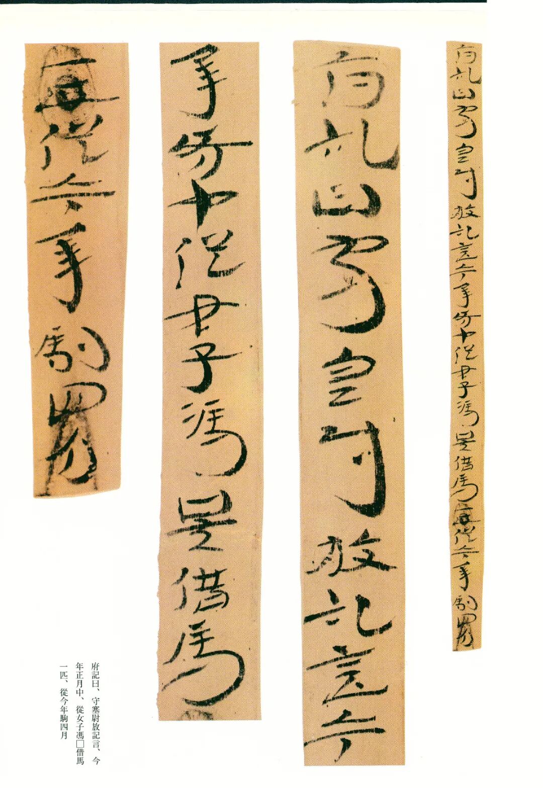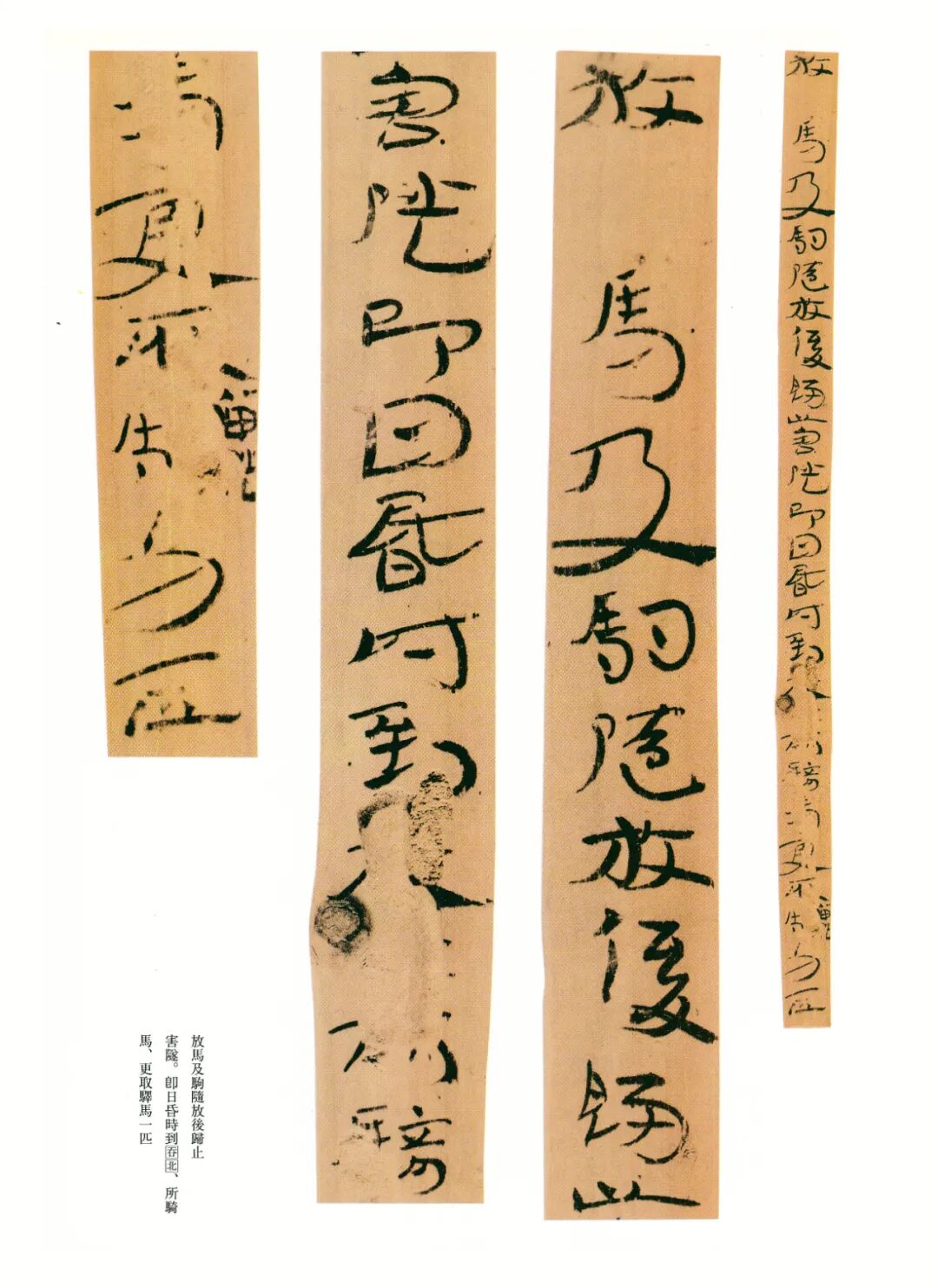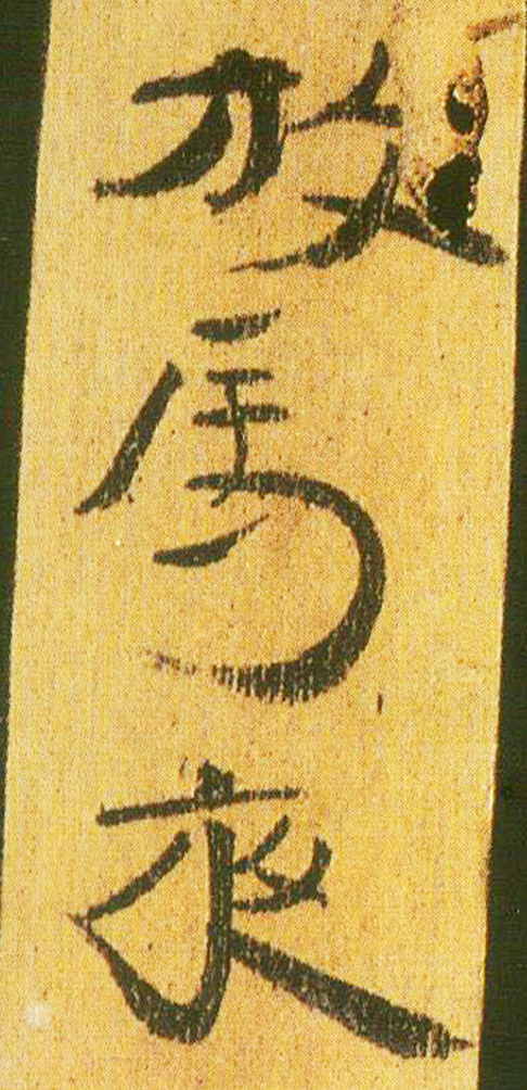 《误死马驹册》属居延简中较具艺术水准的章草作品。启功先生描述汉代章草时说:“汉代草书简牍中的字样,多半是汉隶的架势,而简易地、快速地写去。所以无论一字中间如何简单,而收笔常带出燕尾的波脚。且两字之间绝不相连。”日常草体到西汉末发展成一套约定俗成的技法,《误死马驹册》可谓两汉之交代表性章草样式之一。