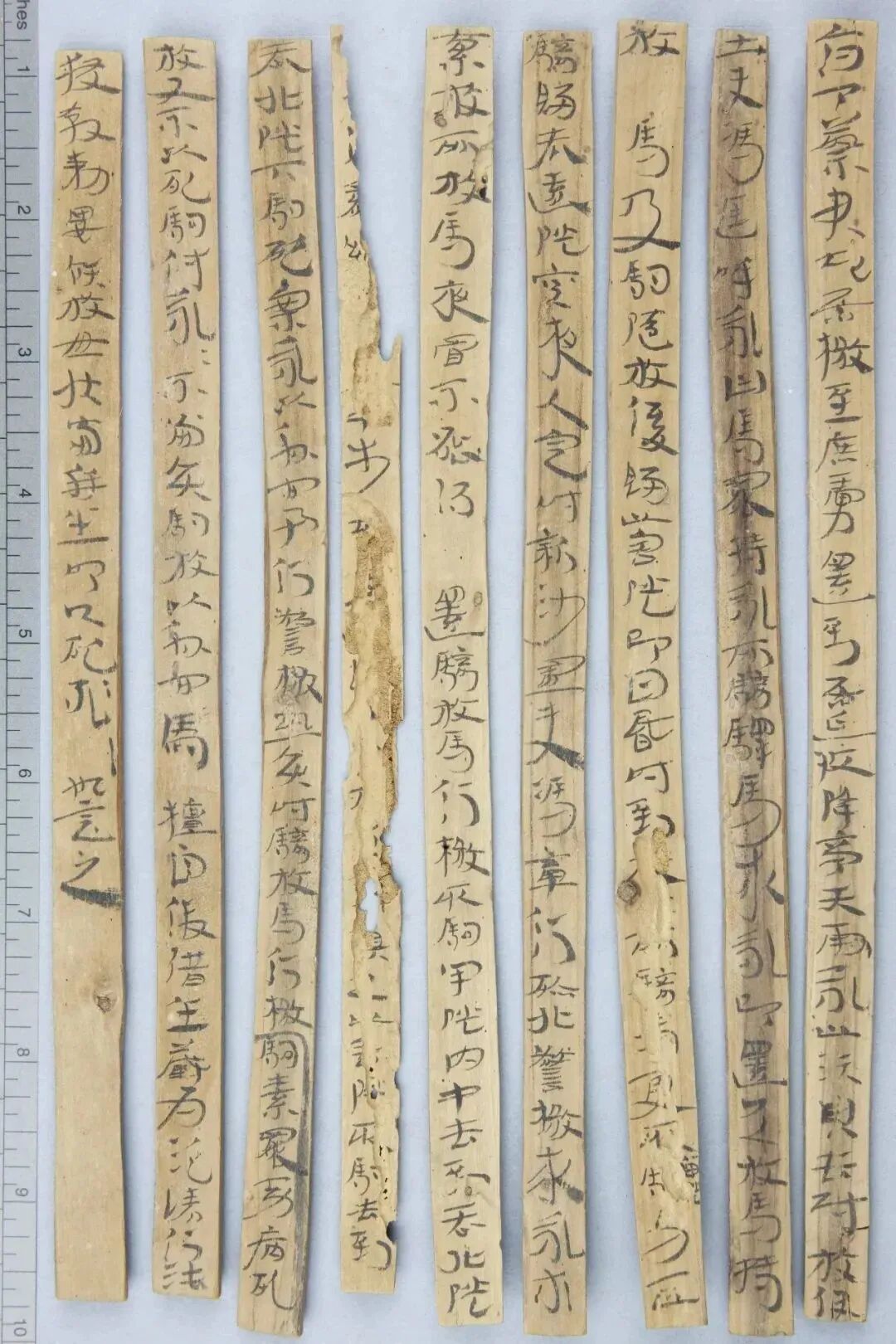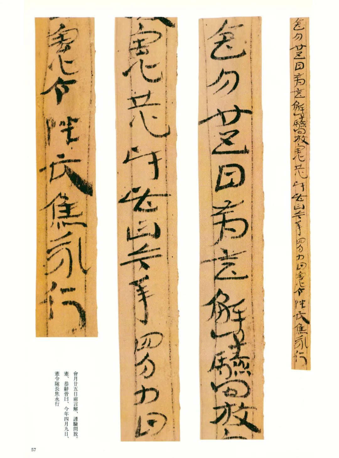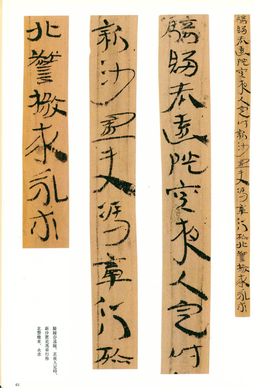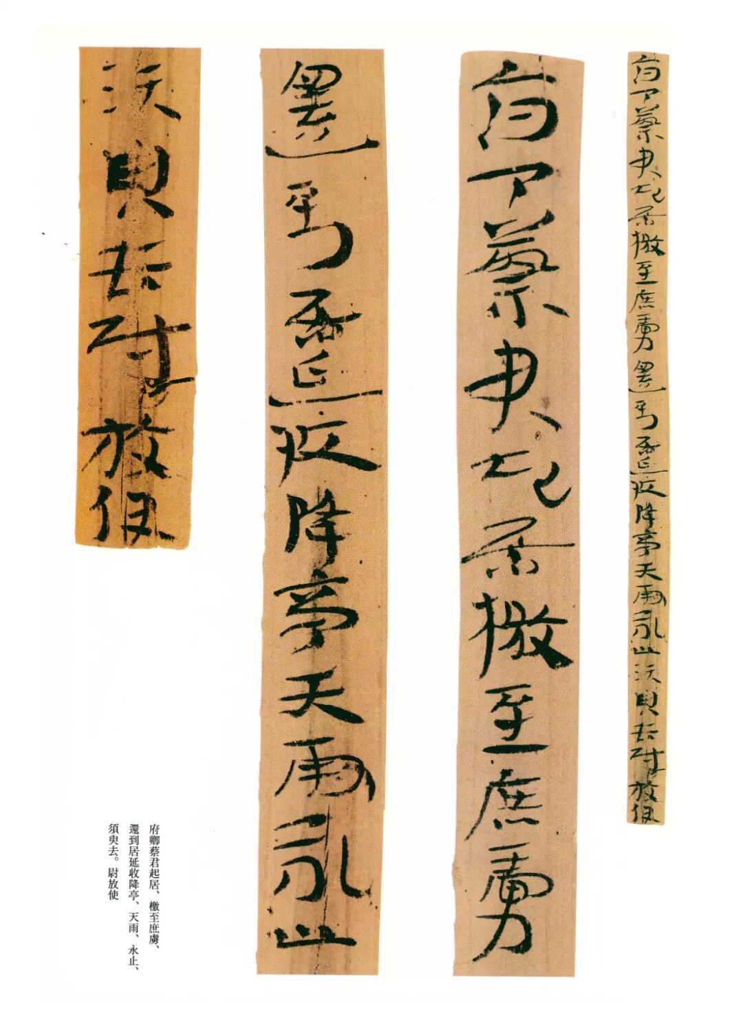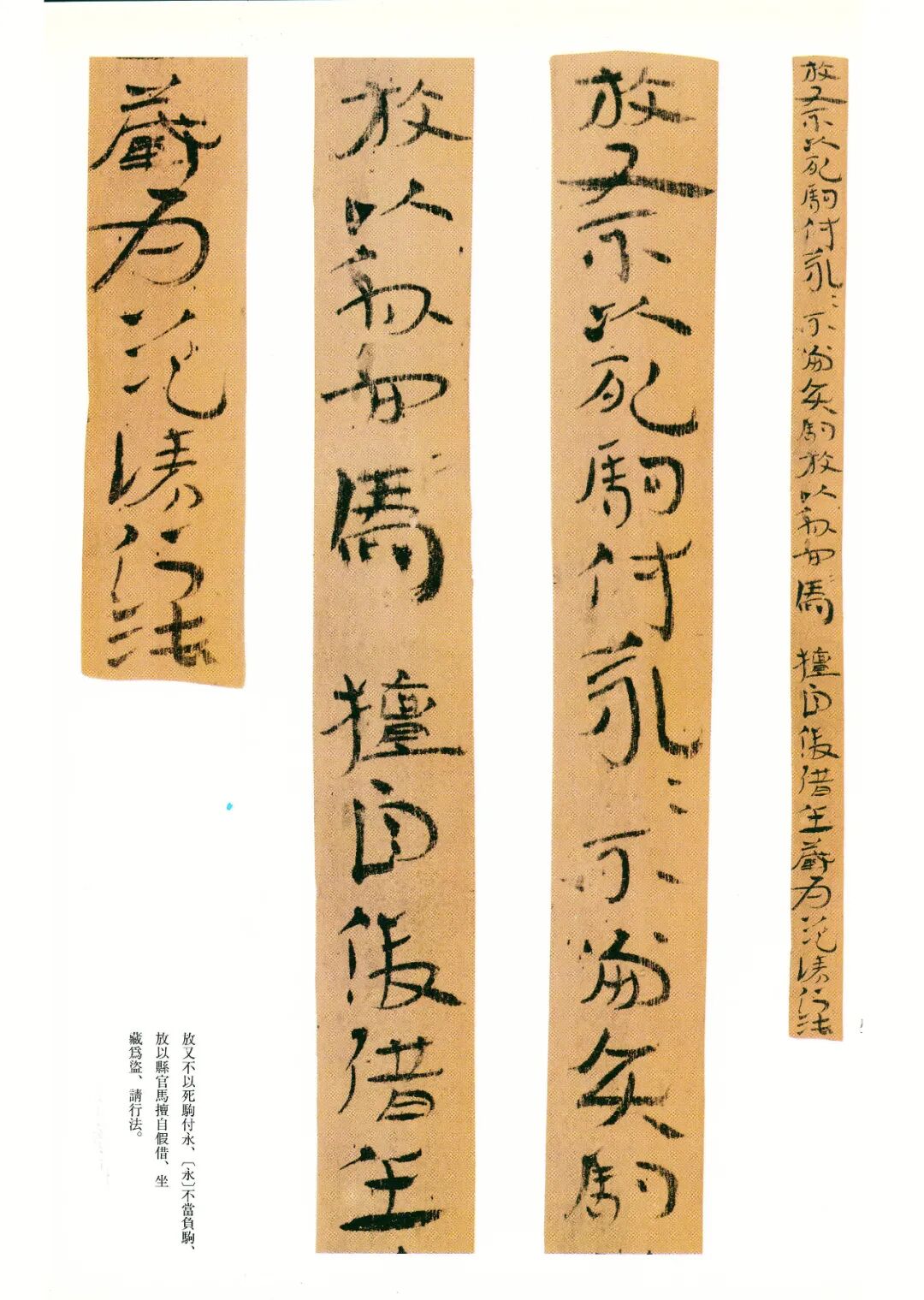 《误死马驹册》属居延简中较具艺术水准的章草作品。启功先生描述汉代章草时说:“汉代草书简牍中的字样,多半是汉隶的架势,而简易地、快速地写去。所以无论一字中间如何简单,而收笔常带出燕尾的波脚。且两字之间绝不相连。”日常草体到西汉末发展成一套约定俗成的技法,《误死马驹册》可谓两汉之交代表性章草样式之一。