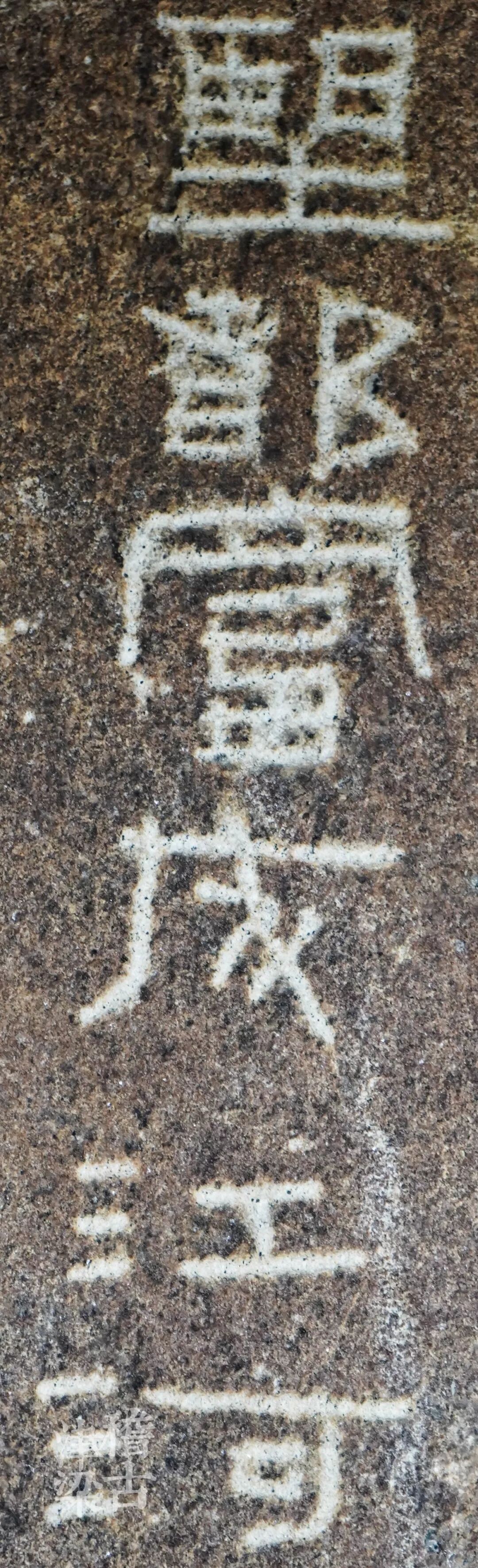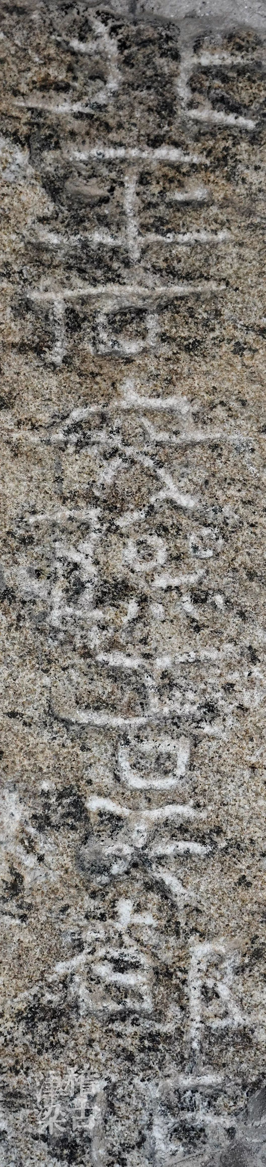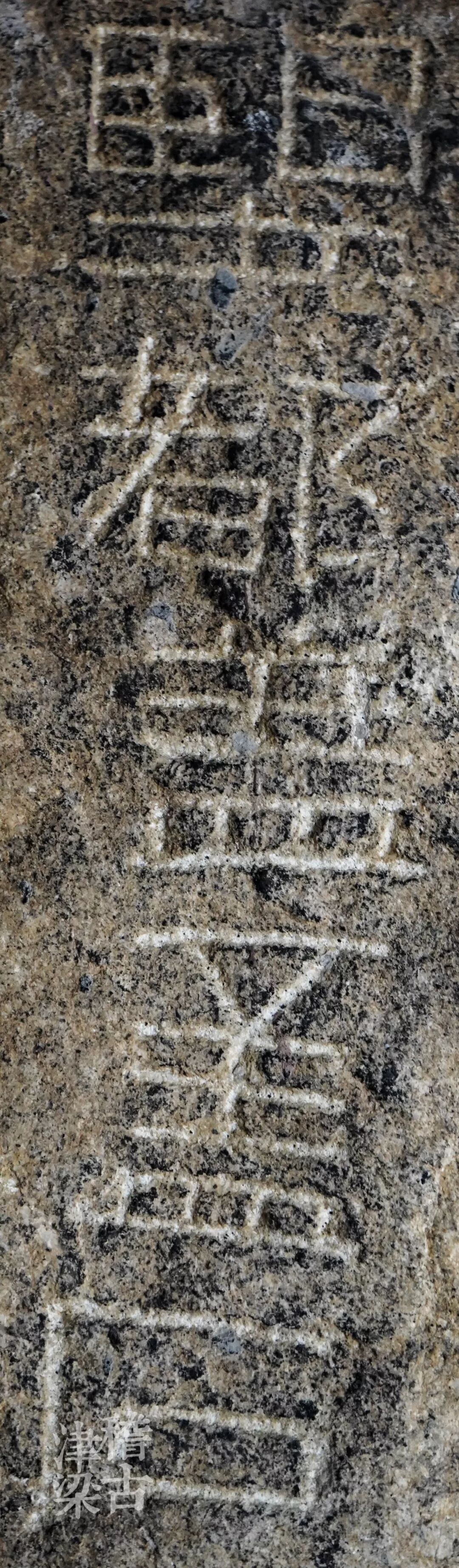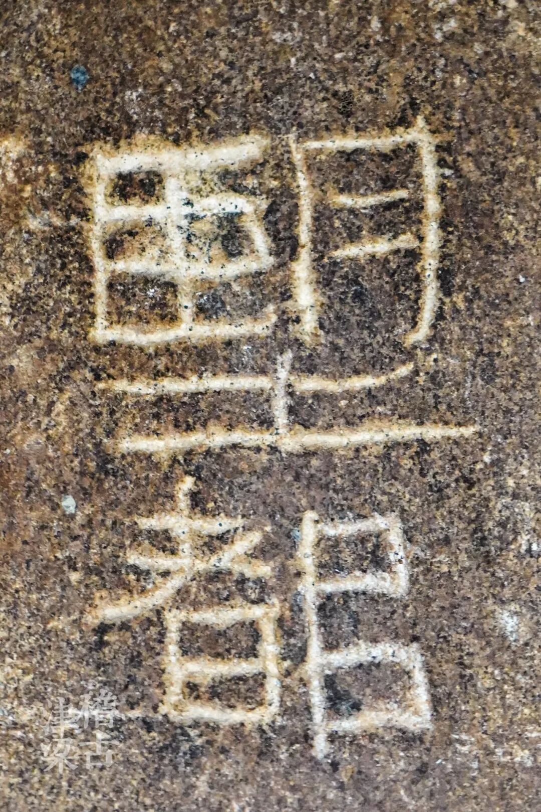 该墓共出土黄肠石四千余块。大都呈方形。长宽各约一00厘米。厚约二十五厘米。其中四百八十八块带有铭文。据考刻石文字当凿于公元七十九至八十八年间。此时的隶书墨迹多有典型的波尾出现。而凿刻文字这类无波尾的隶书屡屡现世。究其原因。其一可能是凿波尾颇为费工而取其便易。其二勒碑刻铭多取篆书古意而不出波尾。从其凿刻工艺上看。这些铭文并非当时镌刻名手。而应是由开采石料工匠镌刻。刻石文字笔画自然朴厚。极少修饰。更有数品反字出现。抑或是目不识丁之工。依样画瓢不甚经意间凿刻而成。从所镌文字总的来看。这些采石工的文化程度并不高。且凿刻时不计工拙率意而为。呈现一派天真烂漫。稚拙高古的气象。正像宋代大书法家苏东坡先生在论书中所云。书初无意于佳乃佳耳。