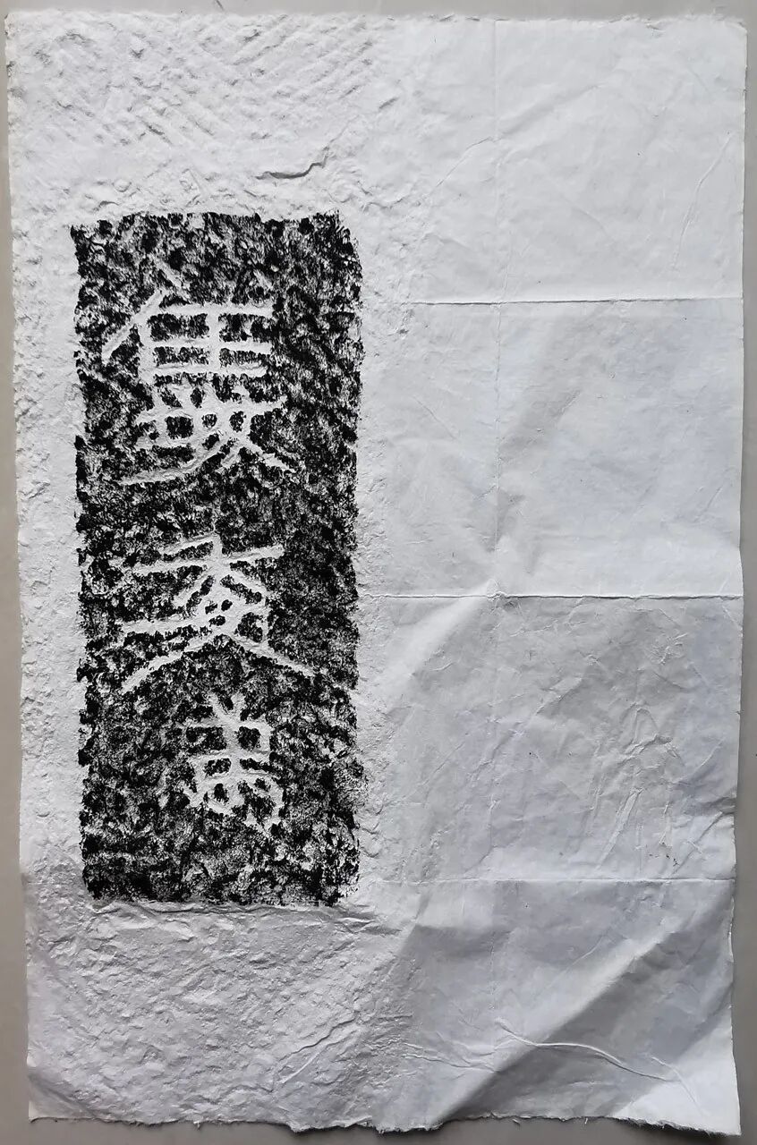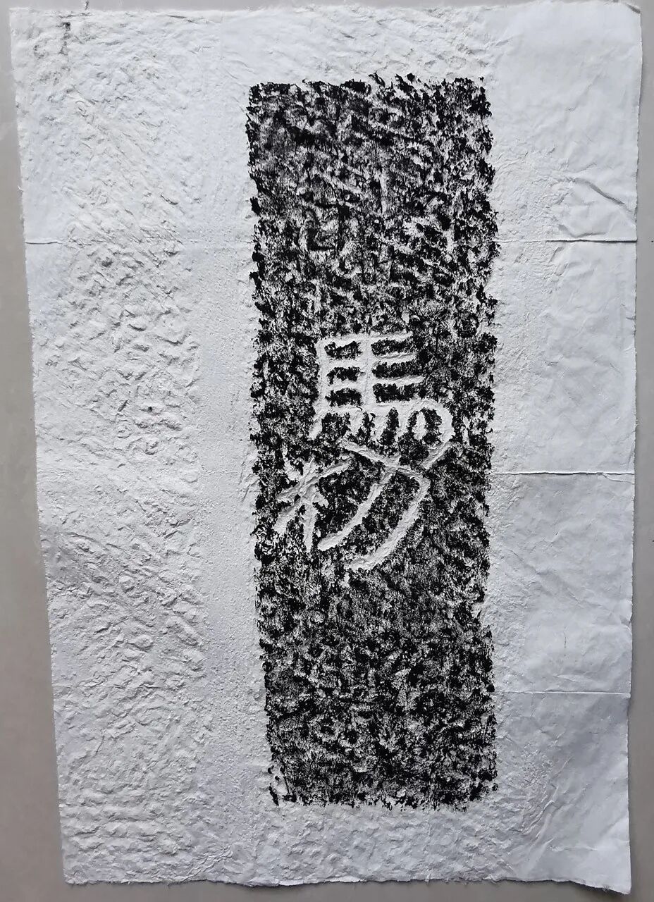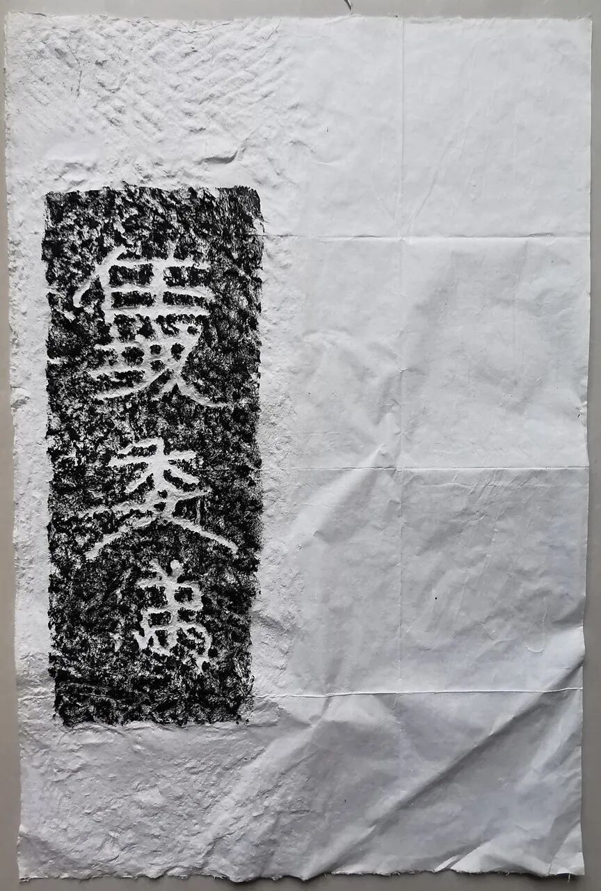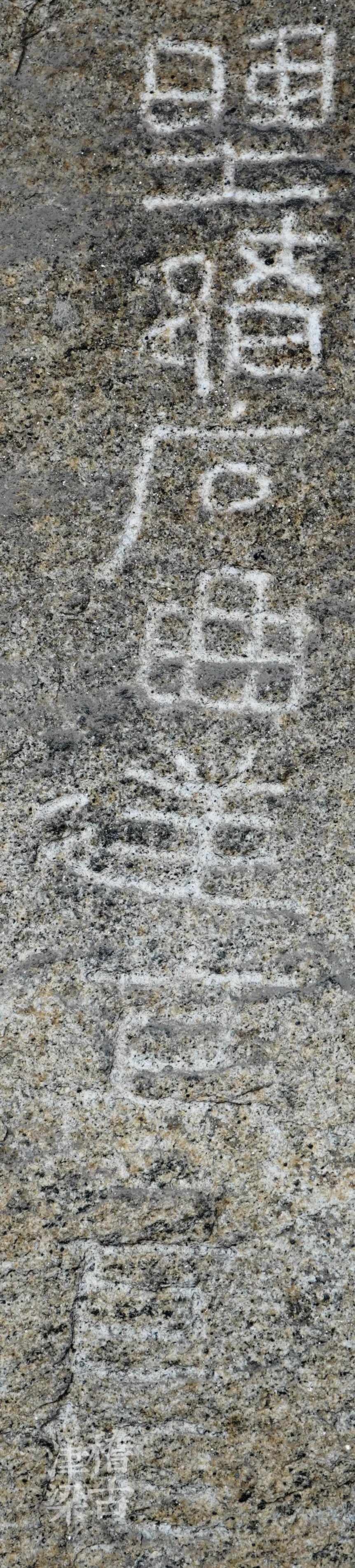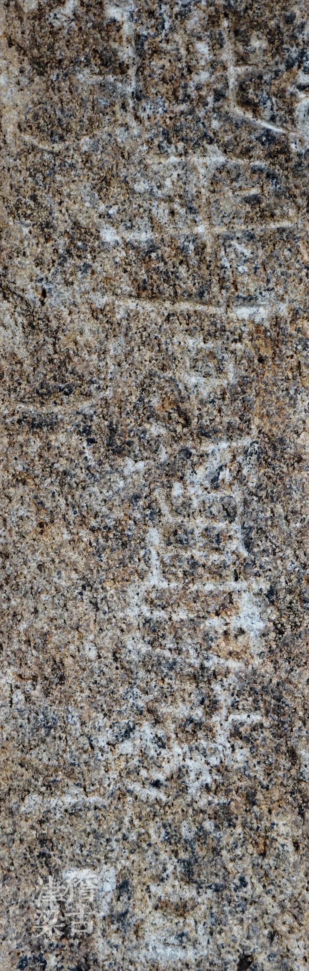 该墓共出土黄肠石四千余块。大都呈方形。长宽各约一00厘米。厚约二十五厘米。其中四百八十八块带有铭文。据考刻石文字当凿于公元七十九至八十八年间。此时的隶书墨迹多有典型的波尾出现。而凿刻文字这类无波尾的隶书屡屡现世。究其原因。其一可能是凿波尾颇为费工而取其便易。其二勒碑刻铭多取篆书古意而不出波尾。从其凿刻工艺上看。这些铭文并非当时镌刻名手。而应是由开采石料工匠镌刻。刻石文字笔画自然朴厚。极少修饰。更有数品反字出现。抑或是目不识丁之工。依样画瓢不甚经意间凿刻而成。从所镌文字总的来看。这些采石工的文化程度并不高。且凿刻时不计工拙率意而为。呈现一派天真烂漫。稚拙高古的气象。正像宋代大书法家苏东坡先生在论书中所云。书初无意于佳乃佳耳。