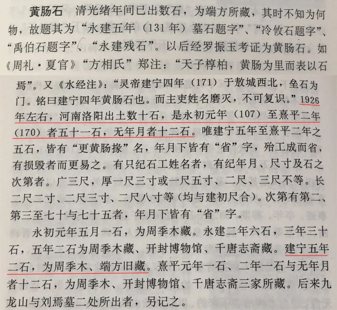 《后汉书》记皇帝丧葬礼仪云;“司空择土造穿。……油堤帐以覆坑。方石治黄肠题凑便房如礼。”可知东汉时期皇帝墓葬,以方石垒砌地宫成为制度,所用大型长方形石材,仍称之为“黄肠题凑”。这种葬式也赐用于诸侯国王、后妃公主、贵族大臣等。文献记载与考古资料证实,就汉代帝王陵墓而言,地下建筑部分,西汉以垒砌柏木为椁室,称之为“黄肠题凑”;东汉改木为石,称之为“黄肠石”。